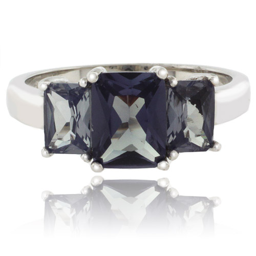Anillo con 3 Gemas de Alejandrita en Plata Fina ( Azul/Morado )