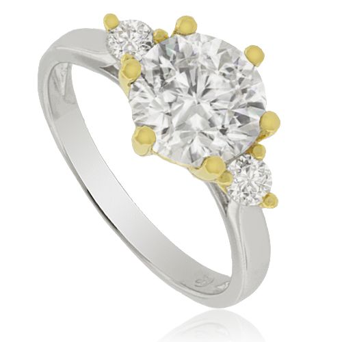 Anillo de Compromiso en Plata .925 con Zirconias y Baño de Oro de 14K