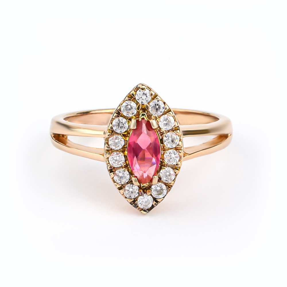 Rubí y diamantes simulados en oro rosa de 14 kt pulido sobre plata de ley. ¡Aquí hay un anillo que adorará un amante rojo!