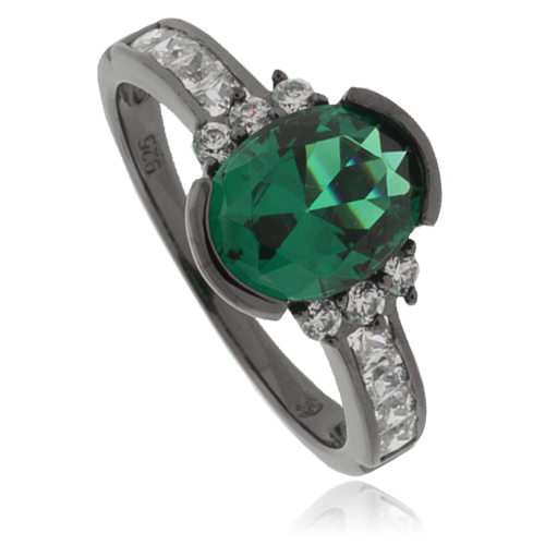 Anillo de Plata Oxidada con Esmeralda Corte Ovalado. El regalo perfecto para una mujer con buen gusto. El anillo esta compuesto por una piedra de Esmeralda en corte ovalado ( approx = 2 quilates ), incrustaciones de diamantes sintéticos decoran y complementan el anillo, hecho con plata oxidada .925 de la mejor calidad. Obsequia este anillo a un ser querido.