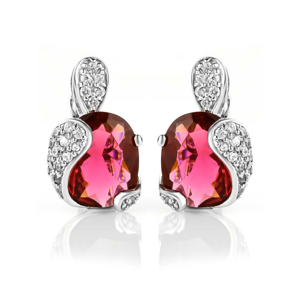Aretes de Plata Fina .925 con Turmalina Rosa. Comienza tu día con estos magníficos y deslumbrantes aretes. Los aretes estan compuestos por una piedra preciosa de Turmalina Rosa en corte ovalado incrustaciones de zirconias blancas alrededor de la piedra completan los aretes. Hechos con plata de ley .925 de la mejor calidad.