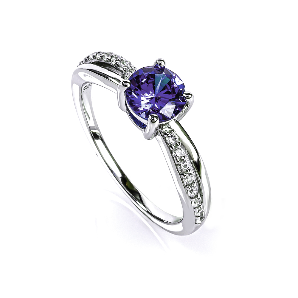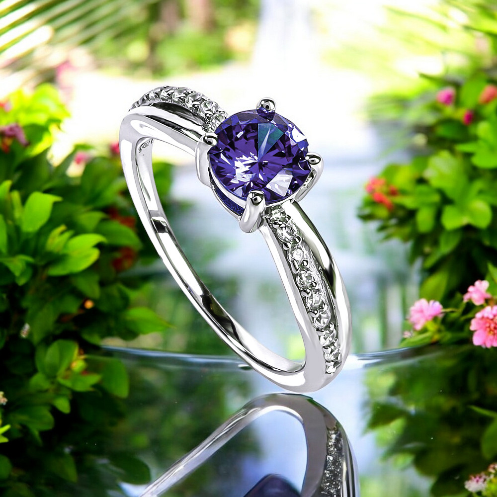 Cambia de Color Anillo de Compromiso Con Alejandrita. Se coloca en el centro de este anillo con circonitas blancas. La plata esterlina es un metal versátil que atrapará la luz con su acabado brillante.